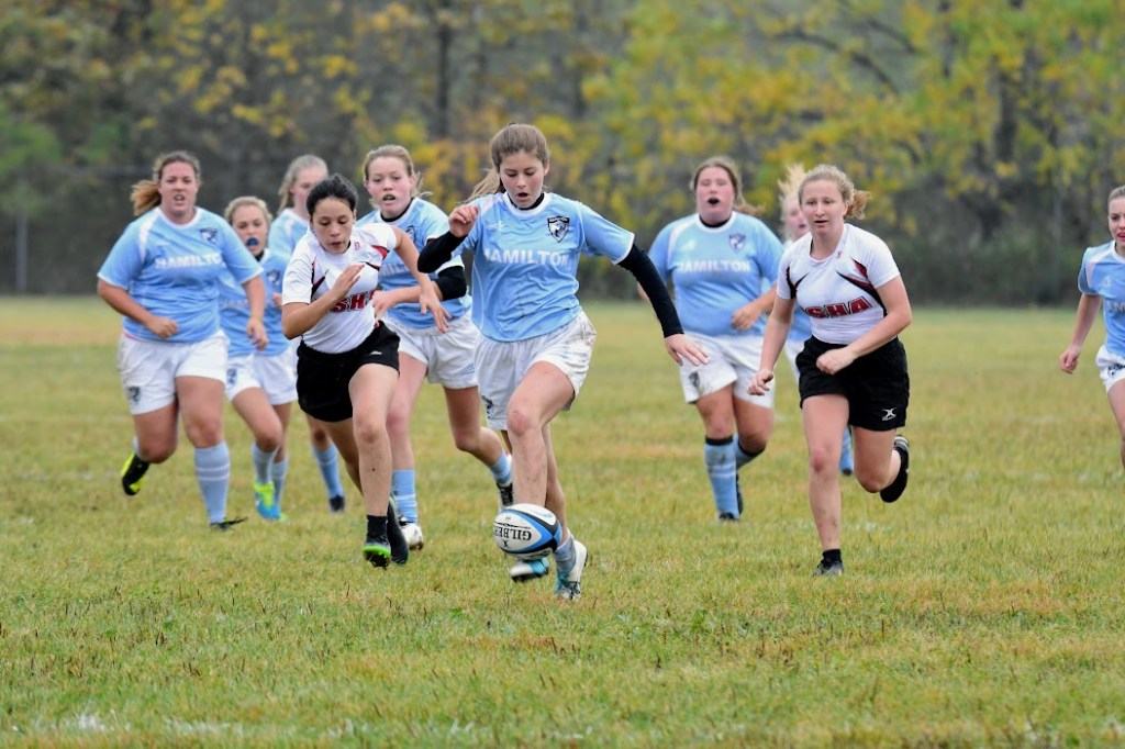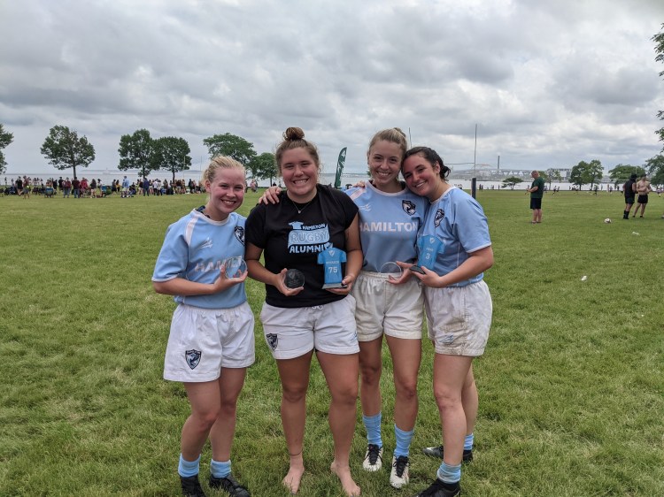As a center and the team’s primary kicker, she was one of the team’s founding members who played in the team’s first two years (both fall and spring). In her era, she was the team’s leading scorer and one of the few to score a try against CMH in 15s. She was on the 7s side that defeated the national champion CMH team at Grove Field. She scored the first try in team history in an exhibition game when she returned the game’s opening kickoff. She also helped start the tag rugby program at Hamilton, and she regularly plays for Hamilton on the alumni team.